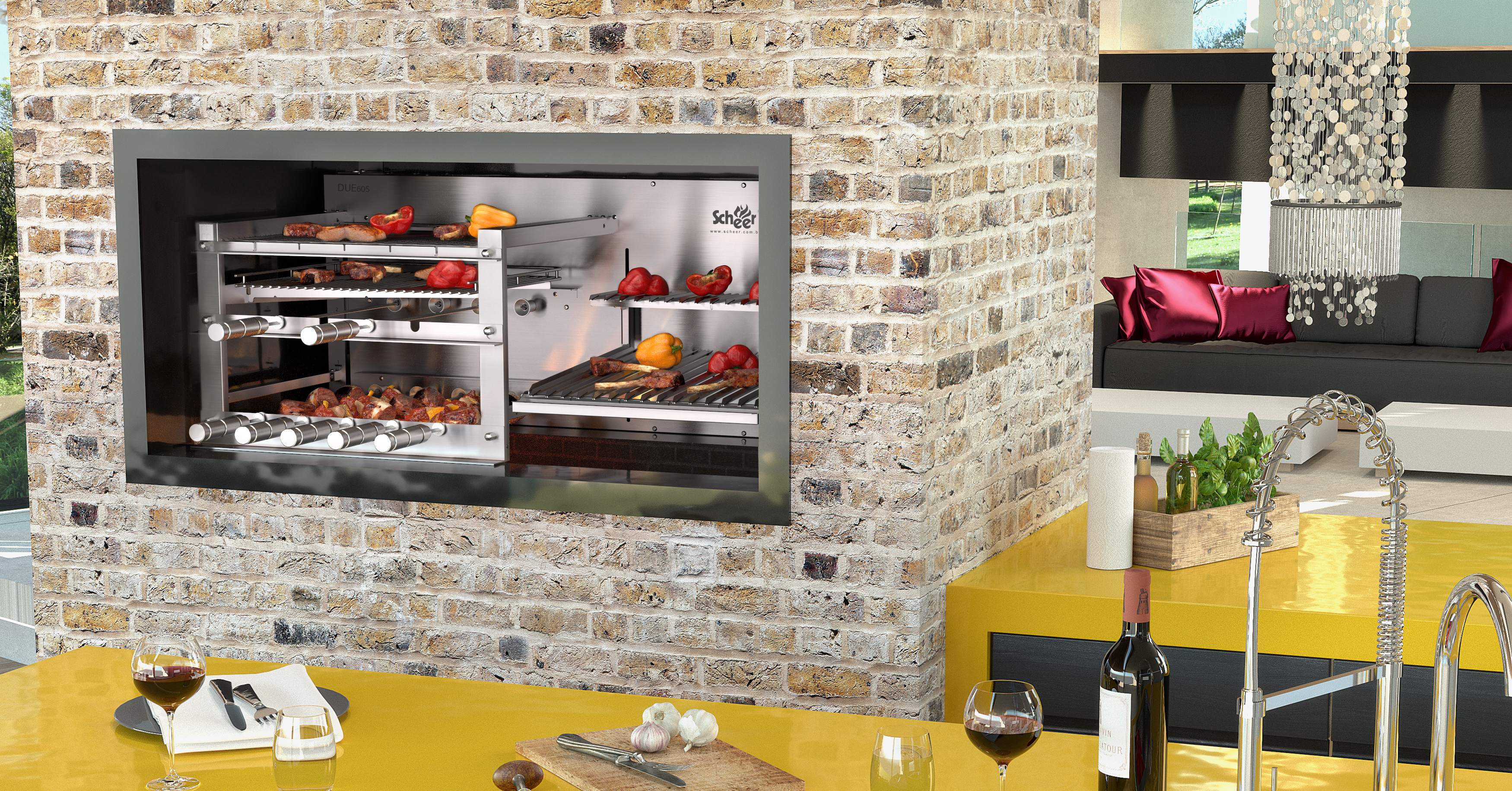 Churrasqueira Rotativa com Braseiro e Grelha Automática para Bancada Cooktop Scheer I9 TRE 905