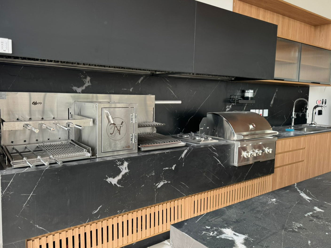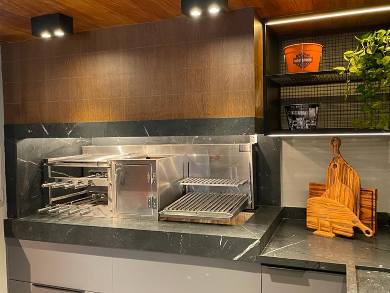 A TRE 900 oferece a experiência completa, assar cortes no espeto com o sistema rotativo e preparar grelhados na parrilla, tudo isso com a praticidade de manter o fogo com o braseiro central.